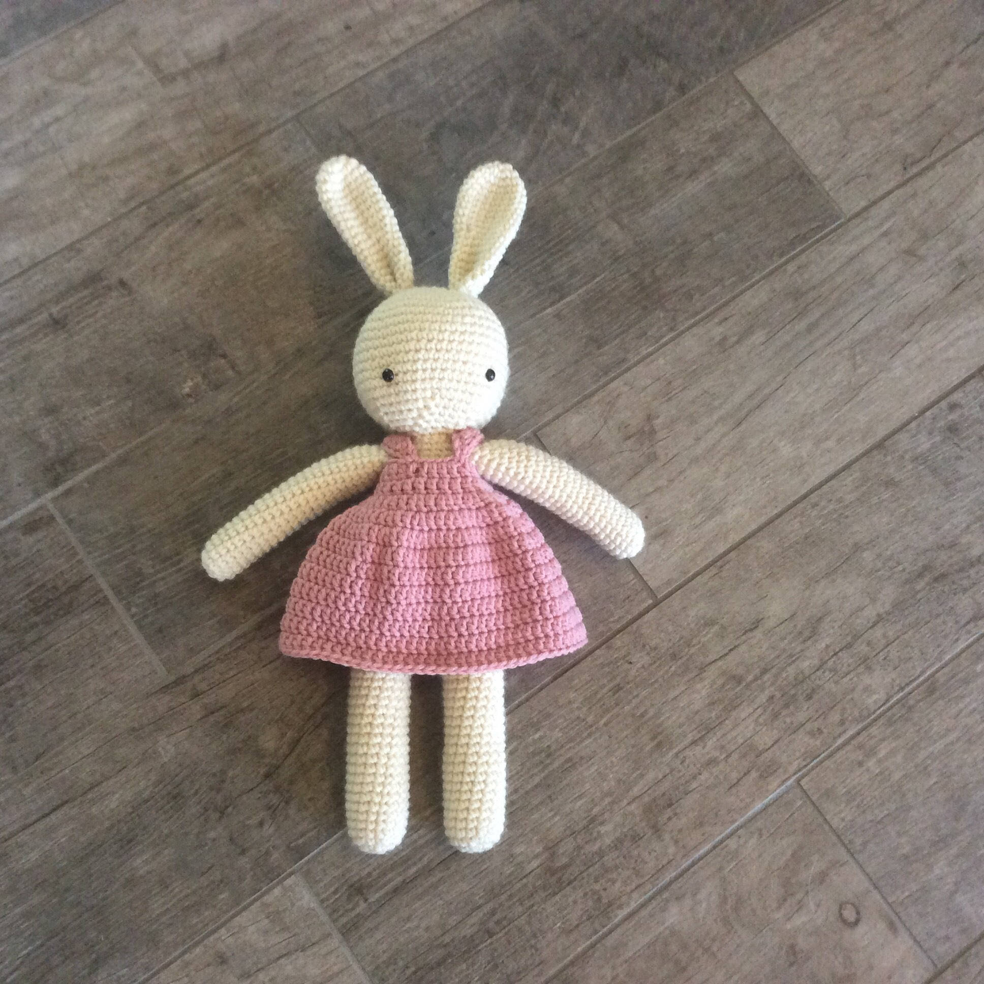 *It comes as a white in a pink dress but if you would like another color, you can request a custom bunny.
