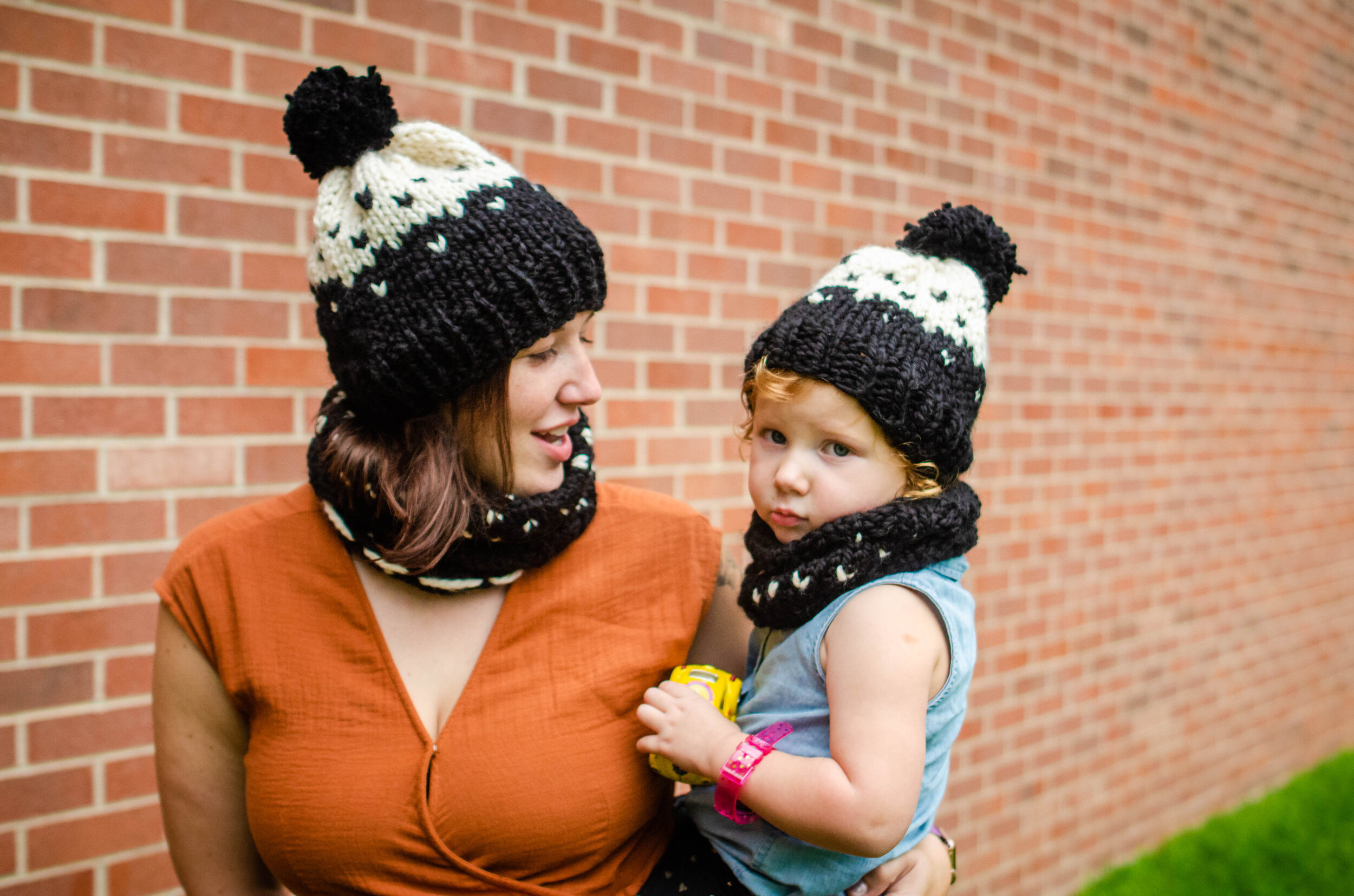 Knit Beanies for Mommy and Me. This set includes one adult size hat and baby hat. This baby beanie comes in three sizes, 0-6M, 6-12M and Toddler.